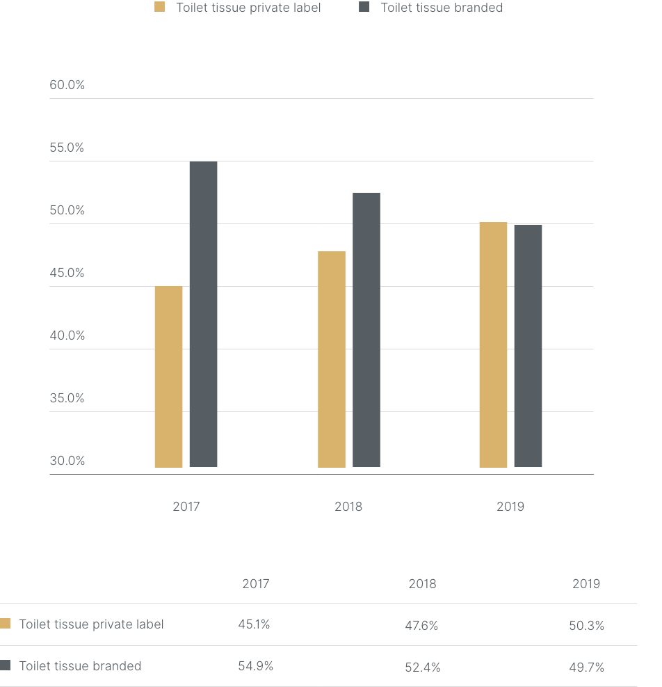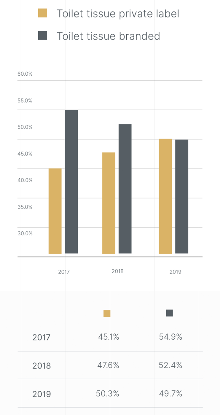 The UK soft tissue market is worth £1.6bn with private label products comprising circa 50%. Accrol is the leading supplier to the private label market, which is growing at over 8% year on year.